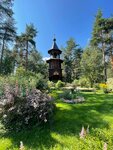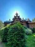 Очень красивое , душевное и чудесное место. Ворота сразу видно при подъезде. Среди сосен прекрасный и ухоженный зеленый участок, где стоит удивительный храм деревянный, красивый своей спокойной, благородной красотой. Рядом две замечательные колокольни. Были в рабочее время , народу было не много.