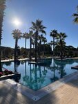 Отдыхали в июле 2025. Все очень понравилось, еда практически круглосуточно, всегда можно найти что-то вкусное для себя. Супы и салаты довольно специфические, но есть салат-бар, где можно намешать себе любой салат, много овощей, фруктов, гарниры, мясо, рыба, роллы, морепродукты. Мороженое и десерты все вкусно. Территория просто класс, не было ни дня что бы мы не нашли свободного лежака, ни на пляже, ни у бассейнов. Есть бассейны с анимацией и музыкой, есть тихие укромные места в тени сосен и пальм. Напитки, в том числе алкогольные, мороженое, чипсы/орешки, полотенца - можно брать без ограничений. Пляж чистый, заход в море плавный, напитки в баре на пляже так же. Аквапарк и детские зоны для купания 👍🏻 Персонал почти все говорят по-русски, все приветливые, следят за чистотой на территории. Каждый вечер вечером красивые шоу на большой сцене, потом живая музыка или караоке, каждый вечер было интересно. В день рождения ребенка нам принесли в номер тортик со свечами и открыткой, было приятно. Wi-fi ловит на всей территории хорошо, даже у моря. Но сим-карту вы там не купите, обмена валюты тоже нет. Из магазинчиков есть сувенирный, магазин со сладостями, меховой салон, ювелирный, и типа мини-маркет, с товарами первой необходимости. Однажды пришлось купить там пластырь, за 450 лир! Это просто. при чем ценников ни на что нет, ощущение что цена зависит от желаний продавца. Читала отзывы о том что номера требуют ремонта. Это правда так, все конечно работает, уборка ежедневная, мини-бар ежедневно, но выглядит это все конечно уже так себе. Халаты и полотенца драненькие. Но, даже это не испортило хорошего впечатления об этом отеле. Отдельно хочется сказать про такси. Если заказывать на ресепшн, то выходит около 40 евро, что очень дохрена. Мы решили воспользоваться яндекс-такси, за 10 евро. несколько машин доезжали до шлагбаума, и отменяли поездку. Потом выяснилось почему - у отеля дежурит такси, которое не пропускает никого другого. Один таксист взял наш заказ, но попросил отойти подальше что бы такси у отеля его не увидело. Мы отошли метро в на 200, а когда сели в машину дорогу нам перегородил таксист отеля, и минуты две ругался с нашим. Я в ахере с этой ситуации конечно. Поедем ли еще раз туда - да