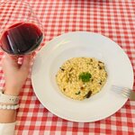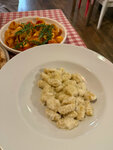 Почему-то не оценила место… пришли пообедать по рекомендации. Заказали ньокки, пасту, пиццу и аранчини. Пицца с сосисками и тушеным мясом, без яркого томатного соуса - это вообще что?… единственное вкусное в пицце - тесто, очень достойное. Аранчини пресные, с сильно переваренным рисом, намеком на болоньезе, соус как к шашлыку их не спас. Блюдо на -10. Паста с соусом из болгарского перца - неплохо, только из-за самой пасты. Сыр безвкусный, помидоры черри - самые неудачные, безвкусные. Очень непривычно не чувствовать вкус томатов в итальянской кухне… Ньокки сами по себе вкусные, но соуса - кот наплакал. Из-за этого блюдо кажется неполноценным. Их вино красное, которое стандартное, очень достойное. Внутри больше напоминает кафешку, не сильно уютно почему-то. Нас вдвоем посадили за маленький столик и в итоге есть было неудобно- ведь все блюда принесли сразу, только аранчини как закуску почему-то принесли в конце… официанты хоть и дружелюбные, но как будто недоучены. По еде - есть рядом ресторан сетевой, где итальянские вкусы выкручены на максималку, цены ниже, а обслуживание и интерьер лучше. Сюда за италией мы точно не вернемся.