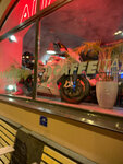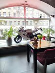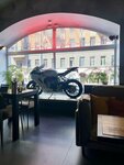 Очень атмосферный зал с мотоциклами. Приятная музыка, которая не мешает общаться. Еда вкусная, начиная с пасты, заканчивая десертом и лимонадом. Порции большие. Горячий шоколад особенно прекрасен. Персонал внимательный и вежливый. Остался очень доволен посещением данного места.
