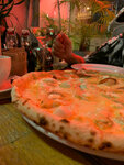 В целом, впечатление от ресторана приятное. Сам он большой и интерьер очень итальяно-атмосферный. Официанты очень вежливые и приветливые. Выбор в меню очень большой, много разных пицц и не только. Цены, на мой взгляд, приемлемые, у меня пицца, мини-десерт и чайник чая вышел примерно в 1400 рублей. При этом, пицца большая, на легко перекусить хватит даже на двоих. Теперь почему 4 звезды. Я очень люблю пиццу с грушей. Заказываю её везде, где найду. В этом ресторане она называется PERA. Само тесто хорошее, тонкое и хрустящее, но вот начинка немного разочаровала. Во-первых, кусочки груши слишком толстые (может кому-то это покажется плюсом), что немного мешает балансу ингредиентов, также, меду было либо очень мало, либо не было совсем. В каком-то кусочке был выражен вкус сыра, а в каком-то груши. К сожалению, вкусовой баланс не случился. Поэтому, если вы идете именно за этой пиццей, решайте сами.