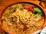 Паназиатская кухня, большое меню, японская и корейская кухня. Плюс стейки. Все достойно, вкусно. Неплохие порции. Заказывали сет на 96 штук. Вкусные супы. Вежливый персонал. Есть залы на первом и втором этаже. В подвале находится караоке зал. Все хорошо, единственно необходимо освежить интерьер