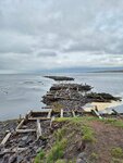 Остатки причала и бараков на окраине города. Проезд через деревню по грунтовке. Люди ставят палатки и живут. Рядом остров на котором снимали фильм "Остров". При солнечной погоде днем вдруг с моря на нас пошел туман резко, отъехали от берега на километр и туман пропал. Неожиданно! Историческое место для тех, кто знает, что здесь было раньше в 1930-е годы.