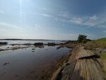 Мы стояли здесь палаткой на ночевку, когда возвращались с Соловков рейсом на 19:30. Место очень красивое. Кемьперпункт- дорога на тот свет. Когда отлив, можно походить по камням. Фильм остров снимали правее от затопленного пирса- там остался обгорелый фундамент. Декорации сгорели в прошлом году от удара молнии.