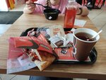 Прекрасное место для отдыха. Приемлемые цены, чистота в зале и санузле. Для прогулки с детьми идеальное место - пока ждём заказ можно посмотреть мультики и поиграть в детском уголке