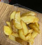 Обычно еда не оставляла у нас негативных эмоций, поэтому выбрали в качестве зоны отдыха и перекуса Комбинат на Волжской. Заказали 3 порции картофеля по-деревенски и еще несколько позиций. На наше удивление, заказ отдали в контейнерах и пакете (хотя мы обозначились, что кушаем на месте). Открыв контейнер с картошкой, мы обнаружили такую картину. Я не смогу передать вам вкус и консистенцию картошки, но она была отвратительной. Отсыревшая, с белым налетом, совершенно резиновая и невкусная. На вопрос - что с картошкой? - сотрудники ответили, что так и должно быть. Делайте выводы сами. Я доказать через отзыв и фото не смогу вкусовые ощущения, но желудок болит до сих пор. Я употребила в пищу 2-3 дольки. Остальное доедал мой друг, просто потому что ему жалко стало. Больше мы здесь обедать не будем. Буду впредь слушать друга, который звал в другое место 🥲 Котлета у бургера, кстати, была жесткой. Так что, из всего, что мы заказывали, хорошим был только Литтл-дог (но казалось бы, его уж испортить невозможно)