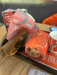 довольно вкусная еда, быстрая готовка, приятный сервис, вежливые кассиры, очень нравится меню с сырной шаурмой, также удобно то, что есть комбо, если несильно проголодался, то можно взять их и перекусить, в целом хорошее заведение в удобном месте, внутри комфортно и вайбово, любителям фастфуда советую