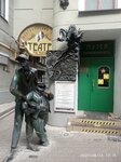Очень интересная жанровая скульптура,распожена сразу около известного театра.Мне первым делом ее захотелось увидеть, очень занимательная вещь.Театр расположен рядом.