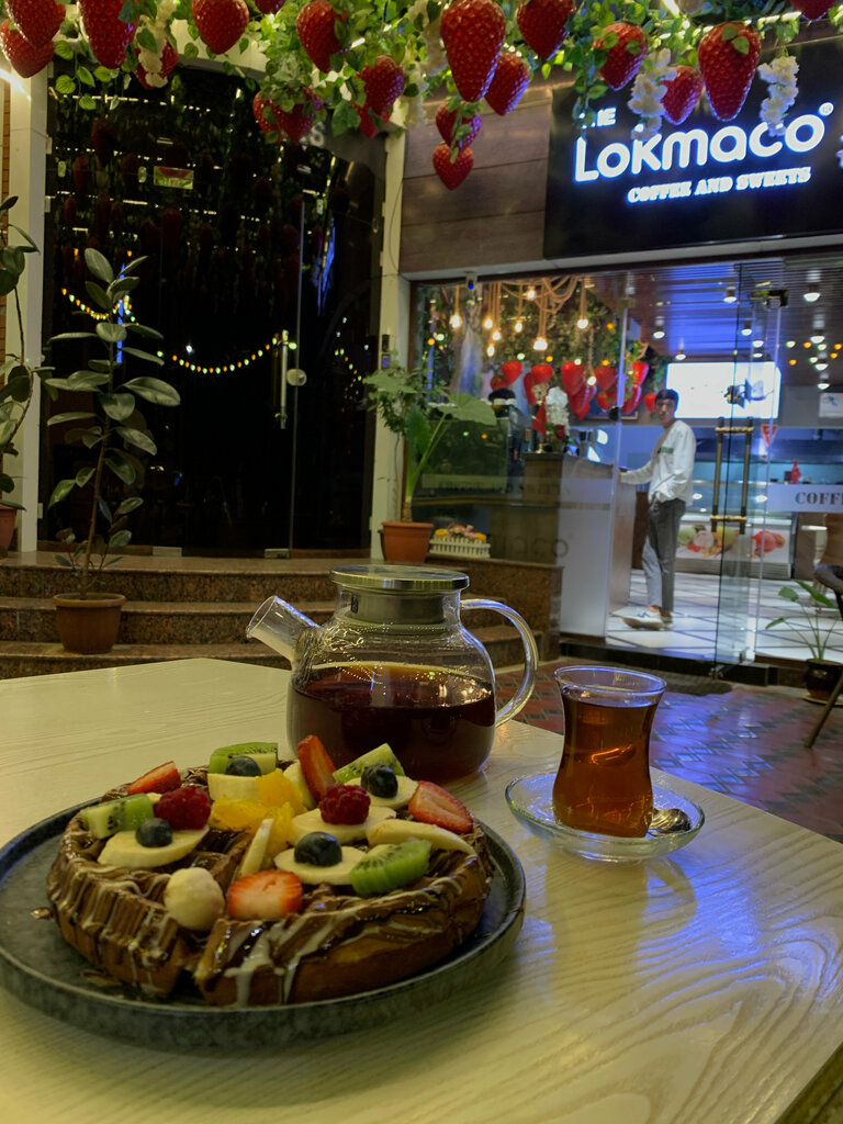 Сладкое блюдо с нежной текстурой. Фрукты — апельсин, клубника, банан, киви — гармонично сочетаются с шоколадом. Ощущается лёгкая кислинка апельсина и сладость клубники. Банан добавляет кремовость, а киви — свежесть. Lokma с фруктами — вкусное угощени