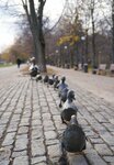 Очень весёлая и, выражаясь современным языком, прикольная, небольшая скульптурная композиция. Посторонитесь, Мама-утка со своими утятами уже десять лет в любую погоду идет по своим делам по парку напротив Новодевичьего монастыря, радуя своим видом идущих мимо прохожих. Куда они идут и зачем - особого значения не имеет. Главное идут..,