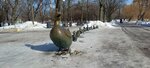 Легендарные утята, которые в 90-е постоянно срезали на металлолом. Сейчас это самая любимая скульптура моего ребенка около Новодевичьего пруда. Зимой утят наряжают в вязаные шапочки и шарфики. Очень мило смотрится. Сейчас вроде возле скульптуры есть камеры, на случай если кто-то опять захочет утащить утку и утят)))