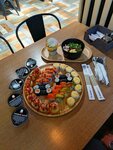Понравилось кафе, чисто, уютно, было не людно, спокойная атмосфера . Все быстро , вкусно , приемлемые цены , еда на любой вкус: поке, пиццы, роллы/суши, бургеры, супы,салаты ….Пока ждешь заказ , можно поиграть в игры, монополия , слова …!