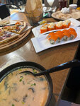 Мидии с отвратительно не вкуным, сыр видимо взят самый дешевый, креветки в панировке, часть была не готова. Панировка, что на креветках, что на ролах Асама, идентична, что портит вкус самих ролов.