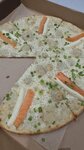 Разочарованы, с доставкой явно какие-то проблемы. Ощущение, что на заказах для доставки не стараются волбще, потому что сколько раз заходили с таким не сталкивались. Заказывали пиццу с лососем в самом кафе (все было очень, вкусно, красиво, много сыра). Заказали ее же доставкой, сыра оооочень мало, в основном чувствуется только тесто, которое буквально видно через тонюсенький слой сыра. Рыба и моцарелла выглядят жалко. В пицце с креветками ужасного вида салатные листья. Коричневые, горькие и пожухлые. Не надо так:(