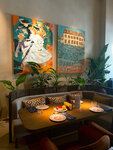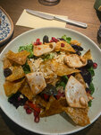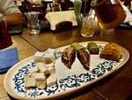 Новый ресторан турецкой кухни на Рождественской. Большой зал, разделённый на несколько зон. Много столиков как отделённых друг от друга сетчатыми перегородками, так и ряд столиков на двоих, объединённых диваном. В интерьере присутствуют арочные своды, мраморные столики, картины и подушки. Большое меню с не всегда понятными названиями - официанты помогут с выбором, рассказав что и как выглядит и как готовится, для простоты сравнив с чем-то более известным. Посадка высокая, поэтому подача блюд долгая, включая даже десерты. Вас встречают приветственным чаем! Еда вкусная, сытная, порции большие. Кебаб-салат - очень удачное сочетание кусочков кебаба с "травой" и пикантным соусом. Пиде с бараниной - почти самса, только открытая, тесто тонкое, поэтому подцепить будет тяжело. Десерты! Фундук-курага - подобие Эстерхази с шариком мороженого и джемом из кураги. Бахлава с грецким орехом - классическая, с сочными слоями, утопающими в мёде. А вот меренговый рулет в сочетании с огромным количеством нарезанного обжаренного миндаля очень удивил. Залы разделены на некурящий и с кальяном. Однако, абсолютно непонятна логика размещения кальянной ДО некурящего зала... мимо не пройти! Официант, которая нас обслуживала в начале ужина, куда-то пропала... Благо, другой официант нас "подхватил" и не уронил марку! И снова туалет вызывает удивление: звуки улицы в качестве фонового шума - очень спорное решение! Реально несколько раз оборачиваешься, ожидая увидеть проезжающие автобусы и машины))