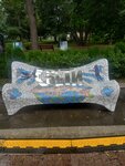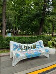 Уютное спокойное пространство, много лавочек и детская площадка. Красивое оформление в рамках проекта лето в Москве.