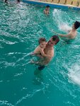 Идеально на возраст 2-6. На более старший пока не пробовали. 2 горки, детям восторг, да и взрослые с удовольствием. 2 бассейна, один глубокий (относительно, взрослые стоят) второй лягушатник, мелким восторг. Горки, корабль. Вода утром чуть прохладная к часам 11 прогревается. Есть мини кафешка, пиво, мороженное. В общем ездим регулярно, рекламируем.