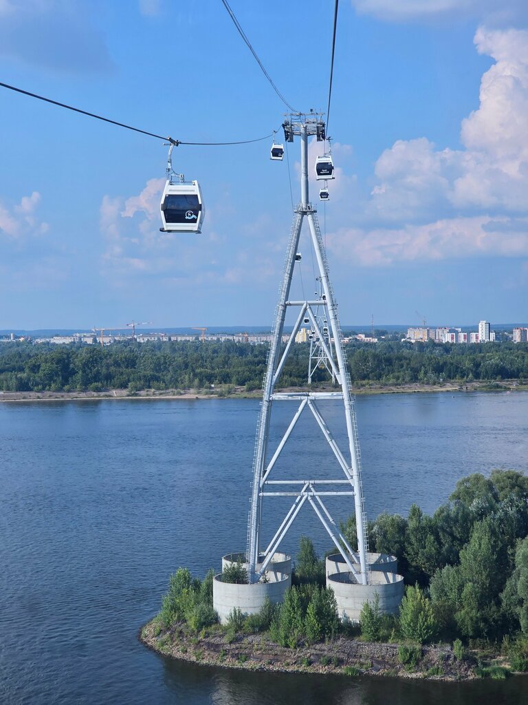 Канатная дорога из Нижнего Новгорода в город Бор, это не просто развлекательный аттракцион для туристов, но и доступный транспорт для местных жителей. Время в пути мин 12-13,кабинки удобные, рассчитаны на 8 человек, едет плавно, не страшно. Стоимость поездки в одну сторону 150 р. Вид из кабинки очень красивый. Получили очень классные впечатления!