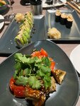 После посещения этого ресторана хочется сказать только одно - МРАЧНО, ну очень мрачно. Мне так интересно, почему возникла мысль сделать его таким цветом, цветом мокрого асфальта !? Ну ладно серость … а освещение где !? В туалете такая темень, что не увидеть ручки двери туалета. Зеркала над раковиной, вообще странная задумка. Толком ничего не рассмотреть в этот набор зеркал размером с карманное зеркальце. Обслуживание ну в целом нормально, официанты знают своё дело, но вот админы вообще не вовлечённые, или глухие. Девушка админ принесла счёт, и побежала, хотя я начала ей задавать вопросы … максимально странно. Ну хоть радует то, что съела мне очень понравилось. Том ям вкусный и роллы тоже. Цены выше среднего. В целом, восторга нет.