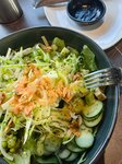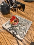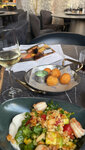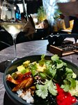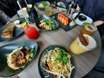 Место хорошее. Еда нормальная. Но очень тесно, прям попа к попе сидеть. Стол на 6 человек интересный с крутящимся центром удобно Все свежее достаточно вкусно Но, напитки ни о чём. Коктейли ну так себе. Брали лимонад. Принесли пафосно в бутылке, но за 800, рублей вкус мог бы быть и по насыщеннее. В общем впечатление не однозначное Место пафосное, но опять же постоянный гул какой то. Вроде и не шумно, но и не могу сказать, что звучала ненавязчивая мелодия Коктейли кстати ждали довольно долго Десерты в принципе однообразные, но это так для справки