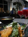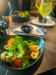 Такое изысканное место, приятная атмосфера, дружелюбный персонал! Необычный интерьер и вкуснейшие блюда! Зелёный салат-любовь🫶! Цены выше среднего, но это того стоит! ❤️Рекомендую! 👍