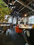 Красивый и лаконичный дизайн. Внимание привлекают все инсталляции, фоткаются и тут и там без конца) но это не мешает. Просьбу подозвать официанта нашего столика приняли молниеносно и позвали с помощью наушника, удобно когда они на связи постоянно. Еда вкусная, цены приемлемые, ожидала выше. Хороший выбор алкоголя, разнообразие вина. Музыка на фоне приятная и не отвлекающая от разговоров.