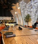 Новый ресторанчик уютный шумный вкусный внутри красивый расположение шикарное Вкусненько там десерт Моти мммм дкбайскиий шоколад умоотьедание Палтус вкусный в карамели салат с крабом и авокадо 👍 все вкусно Блюда приносят быстро Людей много Предварительно нужно бронировать стол Внутри красивый дизайнерский ремонт потолок в виде мидий интересный 🔥