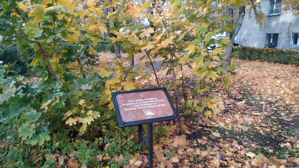 Хорошее, тихое место в тени деревьев. Оцениваю заднюю территорию драмтеатра в целом. Удобные, чистые скамейки. Интересное решение в виде высаженных злаков и цветов.