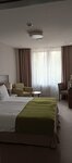 Чисто, аккуратно, тихо. Территория ухоженная, спокойно, зелено. На ресепшене всегда есть персонал, который достаточно приветлив. В комплексе нет номеров с балконами- для тех кто курит- катаемся на лифте на улицу;) Читала отзывы где пишут что в номере чего-то не хватало. Чтоб не столкнуться с этим, заранее писала в отель с просьбой о халате, тапочках, зуб щетке и тд. Брали пакет со с входом в спа зону. Она с 8 до 22:00. НО вход туда только единожды! Нельзя зайти дважды. В номере фен есть, но VALERA очень слаб. В спа-зоне фен лучше!) Если забыли взять в спа зону шампунь/гель д.душа, то на стойке ресепшена спа можно приобрести за 100 руб точно такой же бутылек как и в номере. Заехать на территорию можно как на такси та ки на машине. Парковка на территории комплекса платная- сутки 4000 руб Хочу в номер еще один стул , а лучше кресло! Сидеть на кровати в верхней одежде не очень.. а кроме кровати стоит только один стульчик