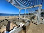 Мы были в сентябре. Народа мало, есть лежаки и настил. Пляж гаечный, лучше купаться в обуви. Пляж бесплатный. Есть туалет платный, но открыли его только к обеду -минус. Может в летний период он и лучше работает. Добраться до пляжа можно только на машине. Пешком очень долго.