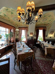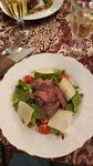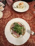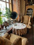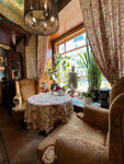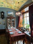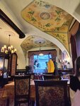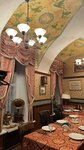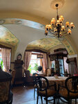 Ресторан очень атмосферный)приятно там находиться,рассматривать детали интерьера,нам достался очень вежливый и достаточно расторопный официант.Девушка на входе - ни жива,ни мертва,конечно,встречать гостей должен кто-то поприятнее)Что касается кухни - может,конечно,мы не угадали с блюдами,но вот было совсем невкусно(Взали салат с языком и салат с уткой по-Шаляпински,оказались обыкновенные майонезные салаты с маленькими кусочками языка и утки соответственно.Дочка взяла наполеон - был гигантский сухой кусок и к нему прилагался какой-то невероятно жирный крем в соуснице,это было ужасно,мы вдвоем с ним так и не справились.Порадовал только пирог с брусникой и иван-чай.