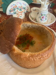 Все понравилось (особенно самовар с вкусностями, блюда в хлебе, пиво) сам интерьер тоже понравился, необычно. Думали будет в итоге дороже чем обычно но на удивление вчетвером наелись и вышло даже немного дешевле чем ожидали. С солью и перцем на столах присутствует чеснок))) Вкусно, внутри красиво, цена приемлемая!