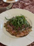 Отличное заведение, специалирующееся на русской кухне. Обязательно возьмите щи. Очень сытно и вкусно! Также советую взять говяжий язык под соусом вин-блан с картофелем и грибами. Ценник для заведения такого уровня - средний. Атмосфера в ресторане создаётся предметами интерьера из дореволюционной России конца XIX - начала XX вв. Музыка подобрана более современная русская. Заранее забронируйте столик, если соберётесь! Если без записи, то вряд ли найдётся место.