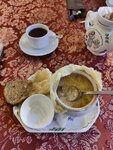 Красиво, атмосферно, изучение меню - отдельное удовольствие. Немного подкачал сервис: подали не тот чай, не то варенье, забыли про мороженое (но в счет его включить не забыли, убрали, правда, без лишних слов). Утка с яблоками вкусная - сочная, не передержанная. Кокиль с потрохами показался суховатым, ожидала больше соуса внутри. Эклер (в порции их аж два) - сахарная бомба, очень приторно. Блинчики с икрой - отличные, тонкие, легкие. В целом оценка 4: отличный туристический аттракцион, туристам к посещению обязательно. Но вряд ли вернемся.