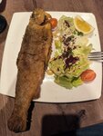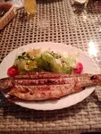 Ресторан просто супер. Сидели на веранде, на свежем воздухе, для тех, кому прохладно, дают пледы. Обязательно попробуйте форель с их хозяйств на мангале, пальчики оближешь. Свежайшая нежная рыба,вкус отменный. И всего 700 рублей за целую рыбёшку 350 грамм. Пробовали ещё жареные баклажаны, тоже очень вкусно. Ценник не дорогой, порции большие, а самое главное вкуснооо!