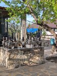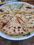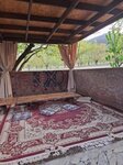 Очень необычное место. Находится среди персикового сада. Среди деревьев можно прогуляться. Есть и другие деревья, виноград. Сам ресторан состоит из беседок: одни с лавками и высокими столами, другие с коврики и низкими столами, более национальные. Выглядит очень необычно. Были группой, подавали рыбу, овощи, пироги с разными начинками. Все очень вкусно. Выпили травяной чай. Чудесное место. Советую.
