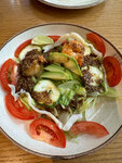 Отравтительная подача блюд, блюда подают по готовности, а не по правилам. Еда - не вкусная. Цезарь подают с замороженными креветками. 3ое посещение - больше не ногой