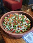 Уже не в первый раз посещаем данное место, в целом уходим довольными. Атмосфера, персонал и цены прекрасны, к ним вопросов нет, все хорошо. А вот по блюдам есть что отметить. Сегодня брали попробовать салат табуле. К сожалению знаем и пробовали оригинал салата заграницей, поэтому он получил оценку 3 из 10. Мяты нет от слова совсем, зато есть ненужная кинза. Нет кислинки (лимона), булгур крупный и безвкусный (должен быть мелкий и запаренный со специями). Не рекомендуем знатокам. Хинкали с вишней и творогом взяли впервые, на пробу. Творога мало и он кислый, вишня огромная, без косточек. В целом на вкус странно, особенно с тестом для хинкали. К сожалению они удостоились оценки 1 из 10 (впервые поставили такую оценку за всю нашу историю дегустации и ресторанной критики). Новинка с креветками восторга не вызвала, смутили помидоры и качество креветок. Оценка 4 из 10. Хинкали с грибами и хинкали с бараниной оценили на 6 из 10, на счёт чистоты фарша из баранины большие сомнения. Далее хинкали с говядиной и хинкали сыром на 7 из 10. Сыр в хинкали творожный, не тянущийся, нам понравился с соусом из аджики. Кстати, соус так себе, особенно плох вкус масла в соусе и качество аджики не супер (2 из 10). Плов порадовал больше всего. В целом было вкусно, мясо нежное, морковка сладкая, барбарис кисленький, рис рассыпчатый, не жирно. Вкусно, оценили на твёрдую 7 из 10. Сегодня из напитков взяли пиво нефильтрованное. На вкус никакое, чуть сладкое, идеально охлажденное. Чтобы очищать рецепторы между блюдами подходит. Сегодняшний ужин большого восторга не вызвал, общая оценка натянутая 7 из 10. Хинкали по ценам дешевле, чем в некоторых местах, но вкуснее всего с говядиной и сыром.