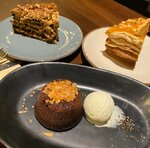 Разнообразие десертов - от простых «домашних» до самых изысканных, да и для любителей кальяна - широкий выбор вкусов. Подача без лишних понтов, обслуживание на высоте. Месторасположение - центровее не придумаешь, что очень удобно как для деловых, так и для приватных встреч. Цены высокие, собственно, как и во всех новиковских заведениях.