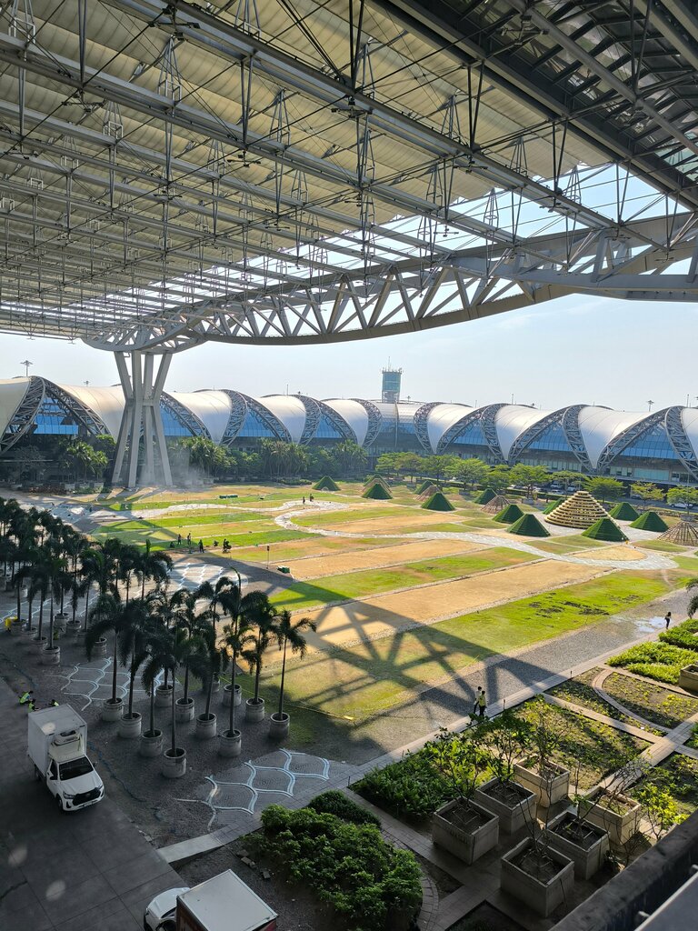Посетил аэропорт Суварнабхуми в Бангкоке — впечатлён масштабами и комфортом! Это действительно огромный современный комплекс с продуманной инфраструктурой. Навигация понятная, указатели на каждом шагу. Персонал приветливый, всегда готов помочь. В аэропорту есть всё необходимое: множество кафе, магазинов, Duty Free с отличным выбором товаров. Особенно приятно наличие бесплатных точек с питьевой водой. Чистота и порядок впечатляют — везде чисто, аккуратно, много мест для отдыха. Для транзитных пассажиров созданы все условия. Несмотря на большие размеры, все процессы отлажены: регистрация, досмотр, получение багажа проходят быстро. Однозначно рекомендую этот аэропорт — он отлично организован и полностью соответствует статусу международного хаба!