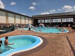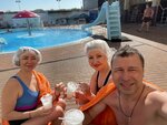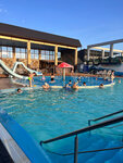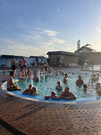 Ездили днём в будний день. Народу очень много. Местные говорят вечером ещё больше. Это наверное единственный минус. Теперь плюсы. При покупке билета дают дополнительные пол часа на переодевание. Шкафчиков много, закрываются на ключ, боками не толкались. Есть небольшие стульчики пластиковые рядом со шкафчиками В душевых и туалетах чисто. Бассейнов много, и больших и маленьких. Есть соленые и пресные, с бульками и без. Есть детский довольно большой бассейн с небольшими горками - лет до 10 точно можно скатиться. Шезлонги все заняты были, так что не воспользовались. Коктейли не брали, со своим лимонадом прошли. Ходили с детьми, 2.5 часов хватило за глаза.