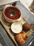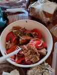 Грузинский ресторан со всеми атрибутами - национальная одежда на входе, национальная зажигательная музыка, слегка помпезный интерьер... Нам не повезло, что по какой-то причине не делали шашлык. Но оджахури был такой сочный, вкусный, что не долго печалились мы по шашлыку). Хинкали с красным перчиком, зеленушечкой, чуть сока маловато, но вкусно! Однозначно рекомендуем.