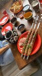 Достаточно самобытное место, среди модных заведений. Зашли сюда после прогулки, потому что очень вкусно пахло шашлыком, а в другом месте было большая очередь. У нас сразу приняли заказ, официант был вежливый, быстро вынесли напитки и хлеб. А вот шашлык мы ждали достаточно долго, около 30 минут, надеюсь, что это из-за того, что его делали, чтобы он был свежим. Шашлык очень вкусный, мне лично понравился. Расчитали тоже быстро. Вообщем и целом понравилось.