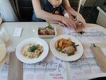 Очень атмосферное место. Рядом НЭТ, зашли вдвоем перед спектаклем. Все понравилось: доброжелательный профессиональный персонал, внимательное обслуживание (официант следил за нашими бокалами), очень вкусные блюда (заказывали два салата). Интерьер в стиле Прованс. После спектакля еще раз зашли на кофе - тоже все отлично! Рекомендуем.