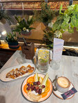 Первое, что бросается в глаза — это уютная атмосфера. Интерьер оформлен в современном стиле с элементами природы, что создает расслабляющую обстановку. Мягкое освещение и приятная музыка добавляют уюта. Обслуживание на высшем уровне. Официанты вежливы и внимательны, всегда готовы помочь с выбором блюд и напитков. Что касается еды, то мы были в восторге! Каждое блюдо было не только вкусным, но и красиво оформленным. Особенно понравились шарики со шпинатом— они были идеально приготовлены, а соус просто восхитителен. Цены вполне адекватные для качества сервиса и блюд. В целом, ресторан оставил у нас только положительные эмоции, и мы с удовольствием вернёмся сюда снова!