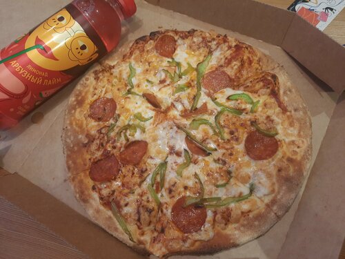 Пришли с подругой в пятницу вечером, народу было немного, это порадовало. Никто не шумел, и на фоне Заказали пиццу чоризо фреш, лимонад арбузный лайм, десерт фондан и креветки во фритюре. Все приготовили довольно быстро и подали горячим. Пицца оказалась острее, чем мы думали, но любителям острого, думаю, понравится. Креветки были странного вкуса, лимонад был не сильно холодным, то, что надо, и фондю мне показалось сладковатым. Персонал был приветлив, все улыбались. Меня спросили о наличии предложения, но у меня его не было (в будущем обязательно его поставлю). Цены вполне приемлемые, нам все обошлось в 1102 рубля, но мы наелись. Всем советую данное заведение к посещению.