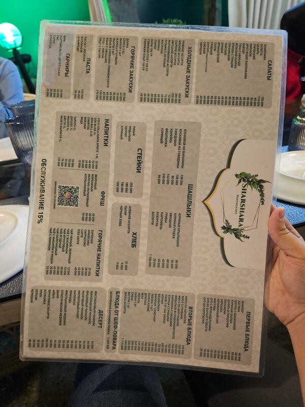 The place is very big and beautiful, we went there a day before the Independence Day of Uzbekistan. Although we were 1 hour late for our booked place they didn't give it away. The waiters were quick and polite, service was excellent, pricey, but worth it!