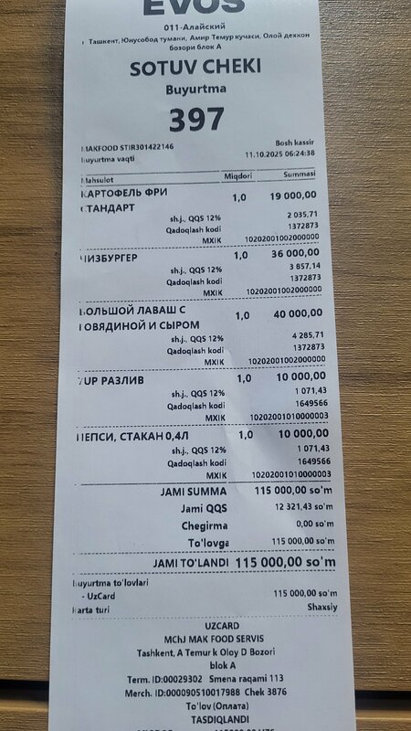 Toshkent • Tez ovqatlanish