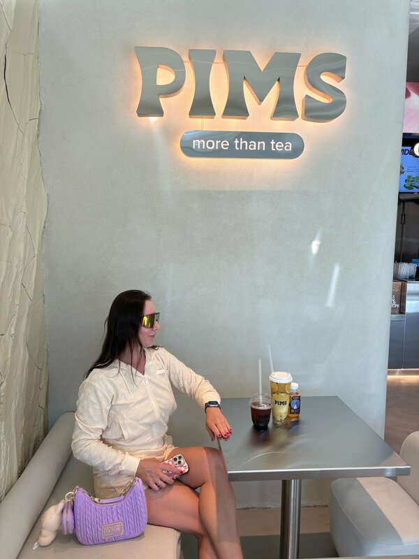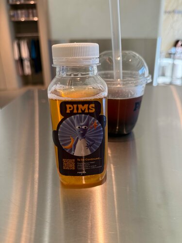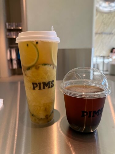 Сегодня с подругой посетили PIMS на Столбова , приятная атмосфера посидеть с напитком. Мой выбор сегодня пал на Aloe tapioca. Так как я хотела что то кофейное. В данном напитке я разочаровалась, оказался не вкусным. Как будто в жженый сахар добавили воды , сладкая такая водичка без вкуса кофе. А подругу коктейль ALL IN порадовал , к нему еще отдельно дают бутылочку с чаем чтобы доливать или пить отдельно ) Я конечно его тоже протестила , и он мне понравился. Так же в PIMS мне нравится матча. 🍵