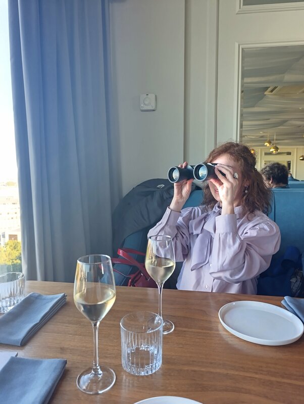 Чудесный ресторан! Стильно, уютно, просторно!. Интерьер на высоте, в прямом смысле)). 15 этаж - панорамные окна и вид на Васильевский остров и на город в целом. Дают бинокль, можно поглазеть! Меню разнообразное, цены приемлемые, подача блюд красивая. Обслуживание тоже понравилось, бывала здесь не раз. Имейте ввиду, что столики у окна ограничены по количеству. Бронируйте заранее. Днём свободнее, чем вечером здесь.